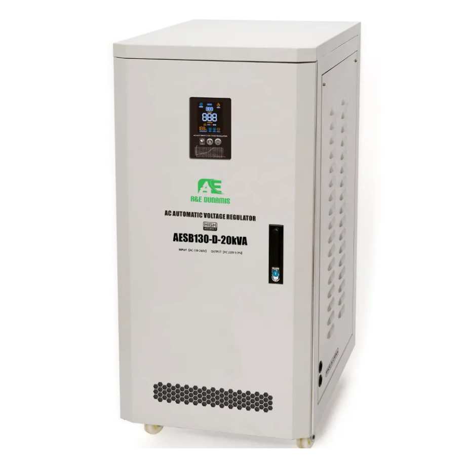 A&E Dunamis 20kv servo stabilizer comes with a wild range of input voltage from (130v-260v) and a constant input of 220volts, thus providing a stabilizer voltage supply and protecting all electrical appliances in your premises, both in your home and offices, this includes Electronics, Fridge, and freezer, Smart TV, home theater, Air Condition, Satellite Decoder, washing machine, fans, etc.